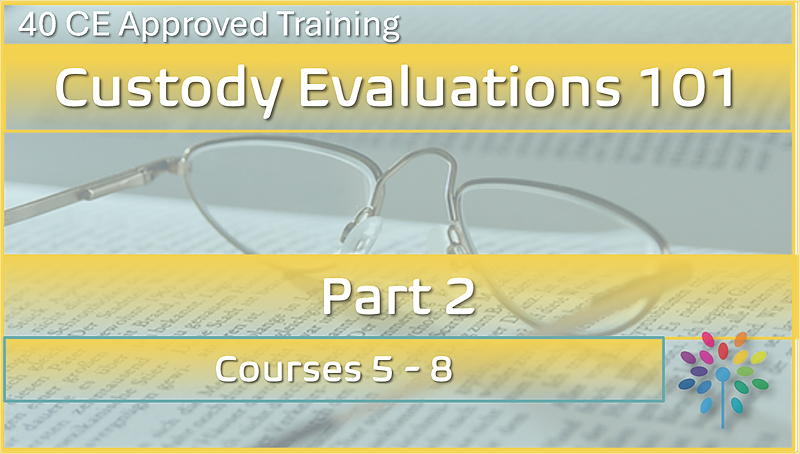 This bundle contains the last 4 courses within our 40-hour, 8 course Custody Evaluator 101 training series - for a total of 20-hours of CE training. All courses approved by the JCC for training to become a court approved custody evaluator.